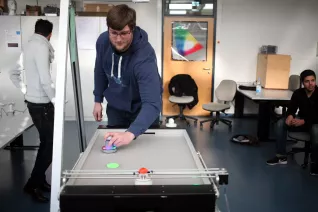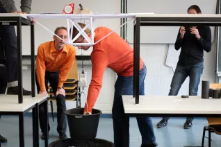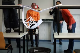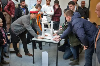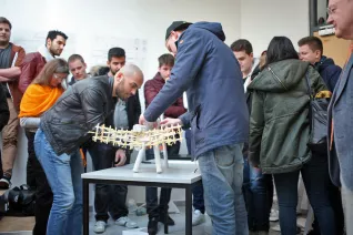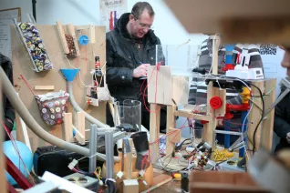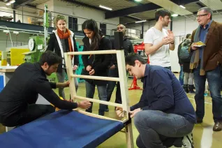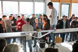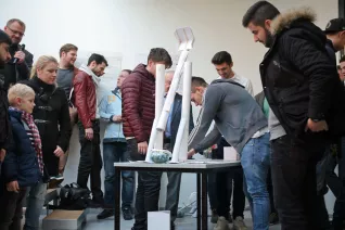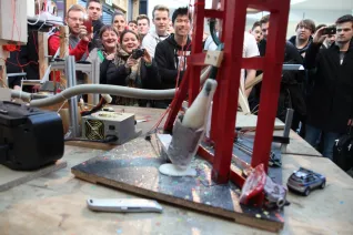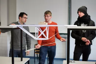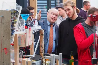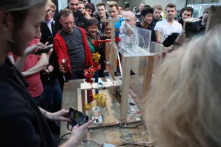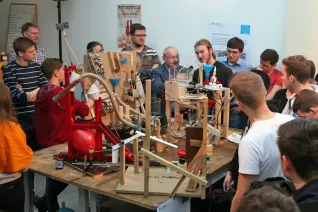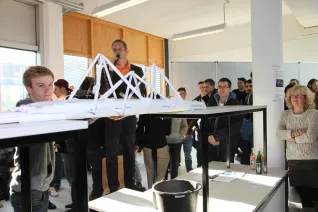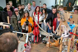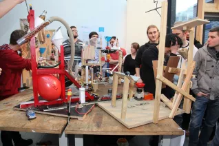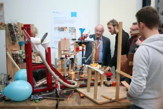 Am Freitag, 22. Januar 2016, hat der Fachbereich Elektrotechnik, Maschinenbau und Technikjournalismus zum dritten Mal den Tag des Offenen Projekts veranstaltet. Die Studierenden des Fachbereichs präsentierten die Projekte, an denen sie während der Projektphase im Wintersemester gearbeitet hatten. Spektakulär war der Brückenbelastungstest, in dem ermittelt wurde, welche Brücke das beste Verhältnis von Eigengewicht zu Tragkraft hatte. Sehenswert waren auch die Eierwerf-Katapulte oder das Motorrad mit Elektroantrieb. Höhepunkt des Tags des offenen Projekts war wieder die Rube-Goldberg-Maschine, die dieses Jahr den typischen Tagesablauf eines Studierenden simulierte. Der Tag des Offenen Projekts hat einmal mehr gezeigt, dass Ingenieurskunst und Tüftlergeist an der Hochschule Bonn-Rhein-Sieg groß geschrieben werden.