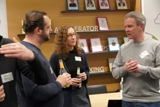 Insgesamt 11 Start-ups und 11 Vertreter:innen verschiedener Investoren, darunter Banken, Venture Capitalists und Business Angel, trafen am 18. Januar im DIGITALHUB.de aufeinander. Beim ersten exklusiven Matching-Event, ausgerichtet von der der Start-up-Manufaktur, dem Transfer Center enaCom der Universität Bonn und dem DIGITALHUB.de stand das Connecten zwischen Geldgeber:innen und jungen Unternehmen im Vordergrund. In einer lockeren Atmosphäre hatten die jungen Unternehmer:innen die Möglichkeit, mit namhaften Geldgeber:innen aus der Region ins Gespräch zu kommen.