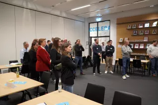 Direkt im Anschluss ging das Programm zum Highlight des Abends, dem Speeddating, über. Die Start-ups wurden in kurzen Intervallen mit jeweils einem neuen Gesprächspartner bzw. einer neuen Gesprächspartnerin zusammengebracht und hatten die Chance, sich und ihr Unternehmen vorzustellen und gleichzeitig die Investor:innen kennenzulernen. Obwohl pro Runde nur fünf Minuten vorgesehen waren, entstanden oft angeregte Gespräche, sodass die Organisator:innen mehrfach zur nächsten Runde aufrufen mussten.