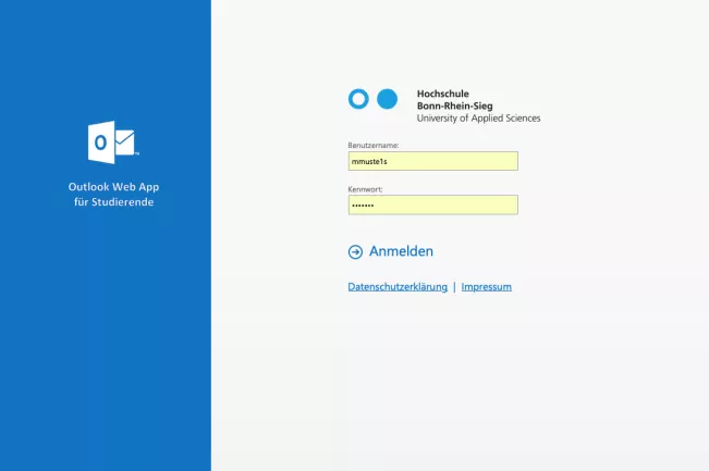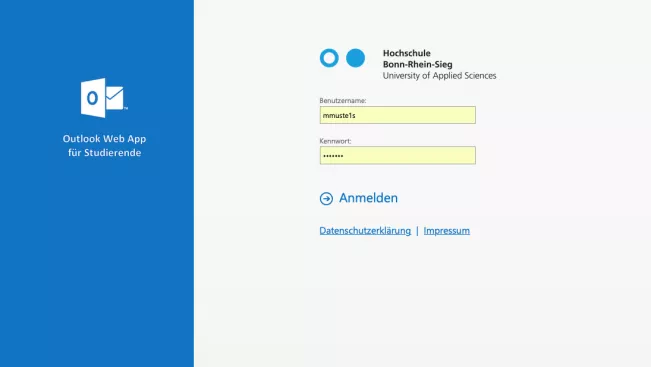 Wichtiger Hinweis: In OWA melden Sie sich bitte mit Ihrer User-ID (mmuste1s) und NICHT mit Ihrer E-Mail-Adresse an. Ihre User-ID erhalten Sie über Ihren Fachbereich.