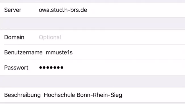 Sofern Ihr Gerät den Kontotyp "Microsoft Exchange" nicht unterstützt, verwenden Sie bitte die im Punkt 6 „Zugriff über IMAP“ genannten Angaben.