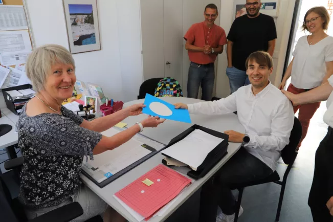 Informatiker Jascha Knack machte den Anfang und schrieb sich direkt in der ersten Septemberwoche online mit dem neuen Verfahren ein. Nach erfolgreicher Prüfung seiner Unterlagen konnten Gertrud Roman, die im Studierendensekretariat für die Promovierenden zuständig ist, und Prof. Rainer Herpers als Direktor des Graduierteninstituts ihn am Freitag, 8. September 2023, als ersten an der H-BRS eingeschriebenen PK NRW-Promovierenden begrüßen.