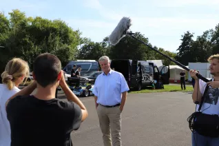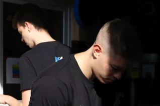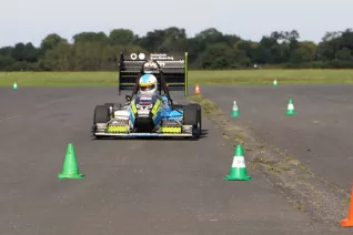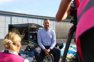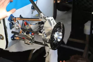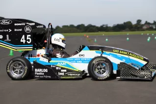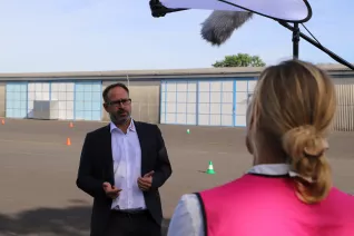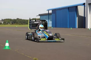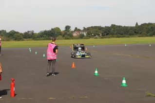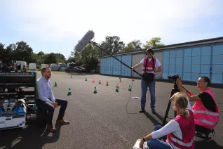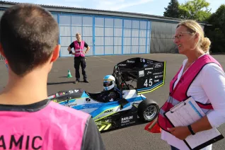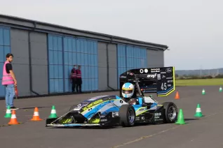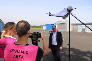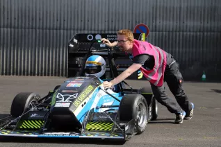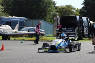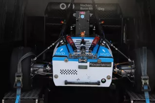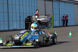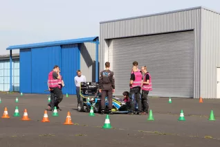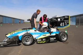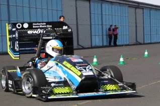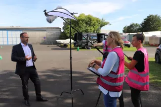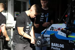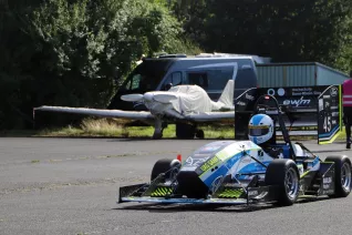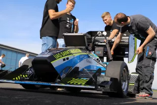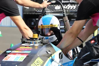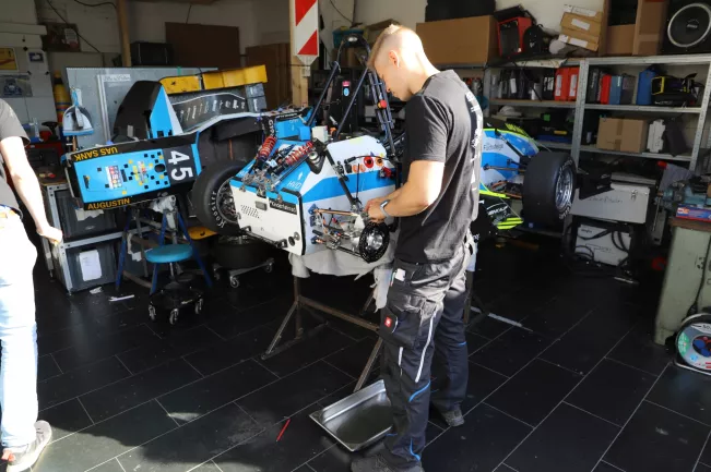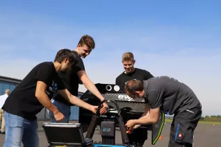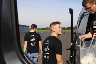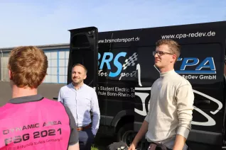 Wenig später ist Luna wieder fahrtauglich und wird dennoch erstmal verladen. Es geht zum Flugplatz in Hangelar, wo Pilot und Team Captain Daniel Röthgen der jungen Bolidin zwischen den Hangars etwas Auslauf gönnt. Nebenan wird weiter fleißig interviewt, nämlich drei Mitarbeiter von Sponsorenfirmen, darunter auch Benedikt Wiencke, ein ehemaliger Vorsitzender des Vereins BRS Motorsport e. V. und heute Team Manager bei Capgemini Engineering. So wie Boris Korlatzki, kaufmännischer Geschäftsführer von Barlog Plastics, und Stefan Laartz, Personalleiter bei Otto Fuchs, ist auch er der Meinung, dass man die Mitgliedschaft im Team BRS Motorsport gar nicht hoch genug einschätzen könne.