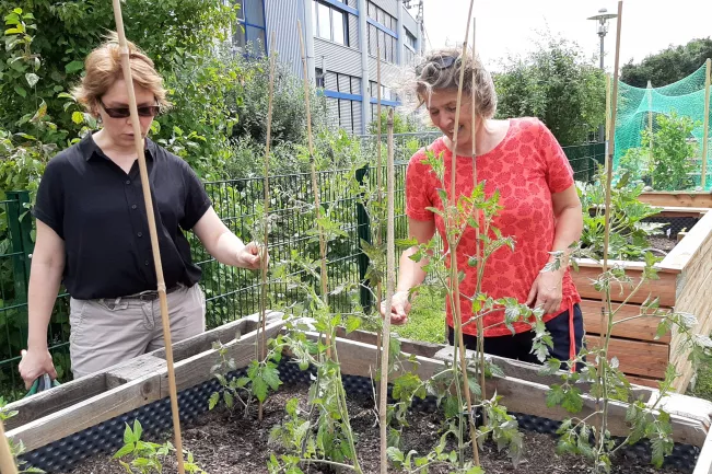 Der Campusgarten ist ein Ort der Ruhe, der Entspannung und des gemeinsamen Gärtnerns. Gemeinsam mit Studierenden der Hochschule Bonn-Rhein-Sieg wurde der Campusgarten im Sommersemester 2021 eröffnet. Der Garten ist im Rahmen des NRW-weiten Projekts "Nachhaltige Ernährung im Studienalltag (NEIS)" an der Hochschule Bonn-Rhein-Sieg am Campus Sankt Augustin entstanden.