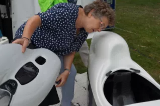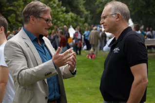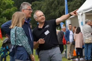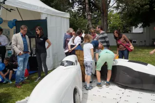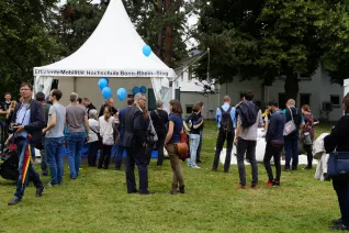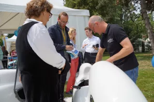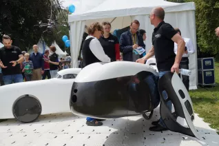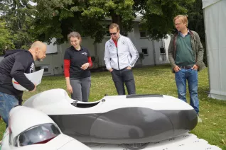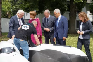 On July 24, 2018, Federal President Frank-Walter Steinmeier invited several scientific institutions in the region to an open day at Villa Hammerschmidt. The Bonn-Rhein-Sieg University of Applied Sciences and the scientists* of the eTa research project were also there, answering the questions of the Federal President and his wife Elke Büdenbender about the highly efficient research velomobiles they had brought along. They were also available to answer questions from other guests from the interested public.