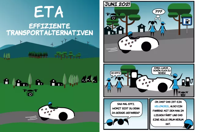 As part of the 2018 eTa event series, PhD student Melanie Ludwig designed a comic book for children that illustrates the goals of the three eTa startup projects in a clear and understandable way.