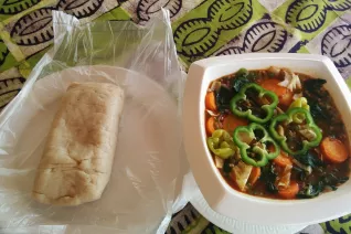 Visser: (grins) The pizza with my colleagues was a one-off. There is often rice or fufu, a pulp of yam roots and plantains. The Ghanaian women are all pretty strong thanks to the strenuous way that fufu is made with a giant mortar. Another special thing is that everything is eaten by hand here, even soup. It takes a bit of getting used to at first.