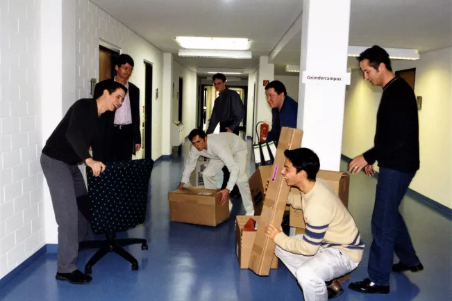 Scheuer: Das war typisch für die Pionierphase der Hochschule, die bei meinem Einstieg ja gerade erst zwei Jahre bestand. Man fragte nicht nach Zuständigkeiten. Es gab noch keine. Die Frage war eher, wer noch eine Hand frei hat und wer wo anpacken kann. In diesem Umfeld konnten wir aber Vieles entwickeln und bewegen. Als die ersten Gründer aus der Hochschule hervorgingen, noch bevor wir die ersten Absolventen hatten, haben wir um die Jahrtausendwende den Gründercampus gegründet, den Vorläufer des heutigen Ökosystems für Startups in der Region.