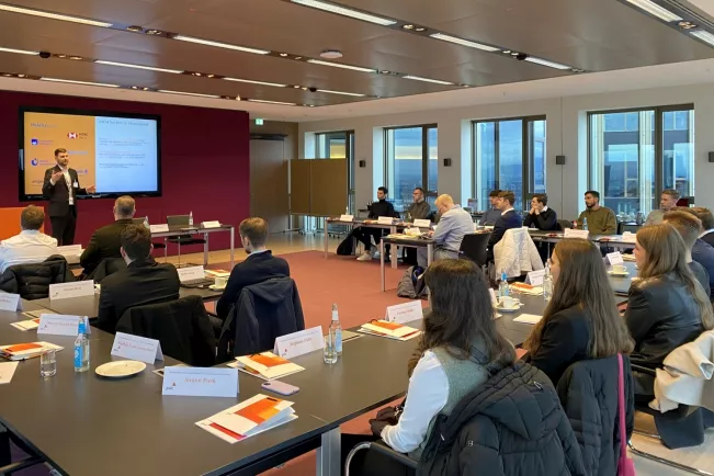 Nach dem Empfang und der Akkreditierung ging es hoch in die 48. Etage. In einem interaktiven Fachvortrag erhielten die Teilnehmenden einen Überblick über die Asset-Management-Branche, deren Prüfungsfelder mit ihren verschiedenen Akteuren und die tägliche Arbeit mit den Mandanten. Im Anschluss befragten die Teilnehmenden die Referenten unter anderem zum Arbeitsalltag in der Wirtschaftsprüfung.
