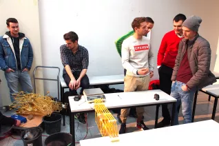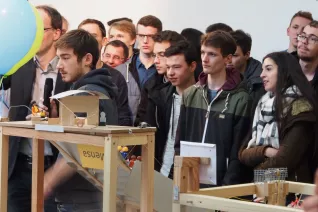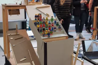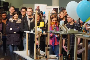 Alles hält den Atem an, wenn die selbstgebauten Brücken aus Nudeln und Klebeband mit immer mehr Gewichten belastet werden, bis sie zusammenbrechen. Spannung und Gelächter gleichermaßen herrschen auch beim Zielschießen mit dem Elektrokanönchen, beim Weitflugwettbewerb mit rohen Eiern und der Inbetriebnahme der Rube-Goldberg-Chaosmaschine.