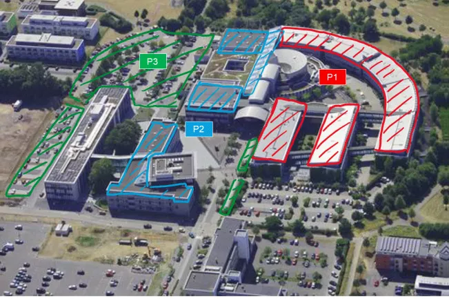 „Die konkrete Umsetzung dieser Planungen ist nun der nächste Arbeitsschritt im Projekt“, so Franke. „Aktuell sollen die Dächer der Gebäude B und C zur Installation von Photovoltaikanlagen geprüft werden. Allein hier könnten Photovoltaikanlagen jährlich 540.000 Kilowattstunden CO2-neutralen Strom produzieren und 220 Tonnen CO2 gegenüber dem Strommix einsparen.“