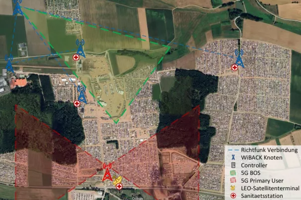Ein fiktives Einsatzszenario: Nach einem großflächigen Stromausfall oder einer Naturkatastrophe bricht die kommerzielle Kommunikationsinfrastruktur in einer Region zusammen. Rettungsdienste und BOS-Einheiten stehen ohne Verbindung da. 5GOpportunity ermöglicht hier den schnellen Aufbau einer autarken 5G-Ad-hoc-Kommunikation. Mobile, solarbetriebene Netzknoten werden rasch eingesetzt, um eine lokale Breitbandverbindung wiederherzustellen.