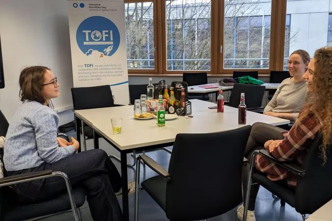 Im vergangenen Wintersemester konnten wir mit dem TOFI Stipendium eine Studentin aus Brasilien und vier Studentinnen aus Jordanien an der H-BRS unterstützen. Seit September 2023 haben sie an Lehrveranstaltungen in verschiedenen Fachbereichen teilgenommen und aktiv an Forschungsprojekten mitgewirkt. Am 6. Februar fand schließlich das finale Meeting mit den Stipendiatinnen statt, bei dem sie uns von ihren Erfahrungen und Eindrücken während ihres Aufenthalts an der H-BRS berichteten. Insbesondere betonten sie den kulturellen Austausch und die Vielzahl an Veranstaltungen, die es ihnen ermöglichten, wertvolle Kontakte zu knüpfen. Sowohl akademisch als auch privat hatten sie eine schöne Zeit in Deutschland und würden einen Studienaufenthalt an der H-BRS definitiv weiterempfehlen.