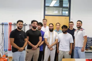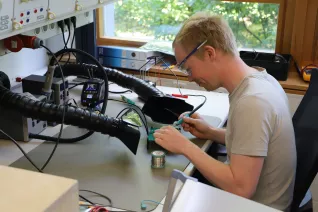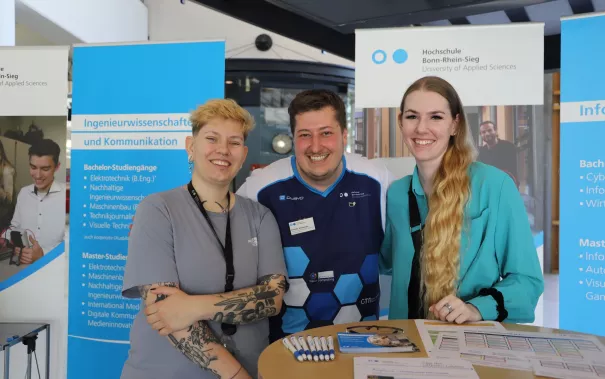 Auch der Fachbereich Ingenieurwissenschaften und Kommunikation (IWK) präsentiert eine Fülle von aktuellen Projekten aus dem laufenden Semester. So zeigt das studentische Motorsportteam den brandneuen Elektrorennwagen. Zu sehen gibt es außerdem das Modell eines automatisierten Hochregallagers, einen Wasserstoffdemonstrator, einen digitalen Synthesizer, einen analogen Gitarrenverstärker und eine microcontrollergesteuerte Kaffeemühle. Stark vertreten waren die Roboter, die die unterschiedlichsten Aufgaben erledigen können. Der Fachbereich gab darüber hinaus Einblicke in seine praxisorientierten Medienstudiengänge. So zeigten Studierende unter anderem, wie sie im eigenen Studio Videobeiträge produzieren oder in einer simulierten Redaktion Social-Media-Inhalte erstellen.