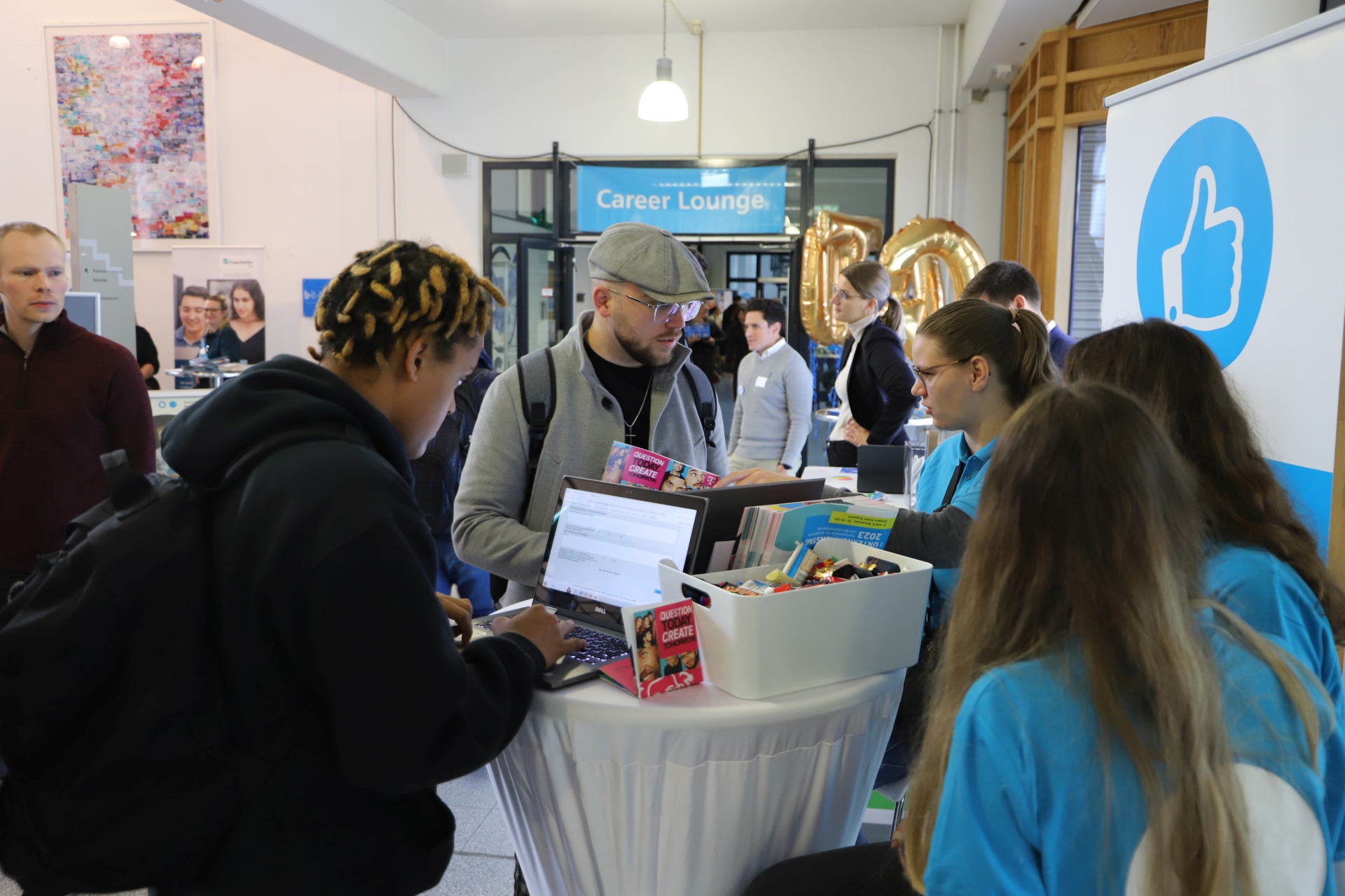Die Unternehmen hatten insgesamt rund 500 Stellen im Angebot, darunter Praktika, Praxissemester und Abschlussarbeiten, Einstiegsmöglichkeiten als Werksstudierende und Trainee oder den Direkteinstieg. Zudem gab es kostenfreie Zusatzangebote wie Bewerbungsfotos durch professionelle Fotografen, Check des Lebenslaufs, Coachings, Interviewtraining und Vorträge an beiden Messetagen. Zielgruppe sind Studierende, Berufseinsteigerinnen und Berufseinsteiger sowie Young Professionals. In den vergangenen Jahren haben viele Studierende auf der Messe einen Arbeitgeber gefunden – einige standen dieses Jahr auf der anderen Seite an den Messeständen und warben an ihrer alten Hochschule um Nachwuchs für ihr Unternehmen.