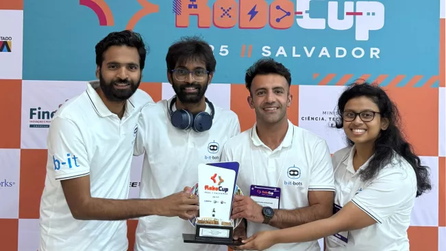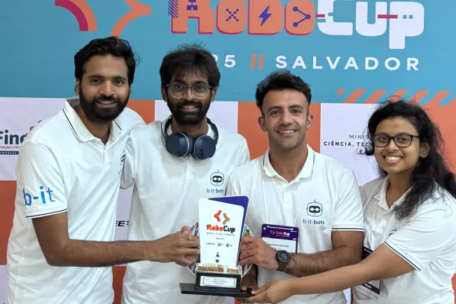 Das Robotik-Team der Hochschule Bonn-Rhein-Sieg kehrt mit dem Weltmeistertitel von der großen Meisterschaft der Roboter in Brasilien zurück. Vom 15. bis 21. Juli sind in Salvador an der brasilianischen Atlantikküste 250 Teams aus 37 Ländern mit ihren Robotern gegeneinander angetreten. Der RoboCup gilt als der größte Roboter-Wettbewerb der Welt. Die Weltmeisterschaft wurde in vier Kategorien ausgetragen. Die bekannteste Kategorie ist Fußball, in der Robotermannschaften autonom miteinander spielen.