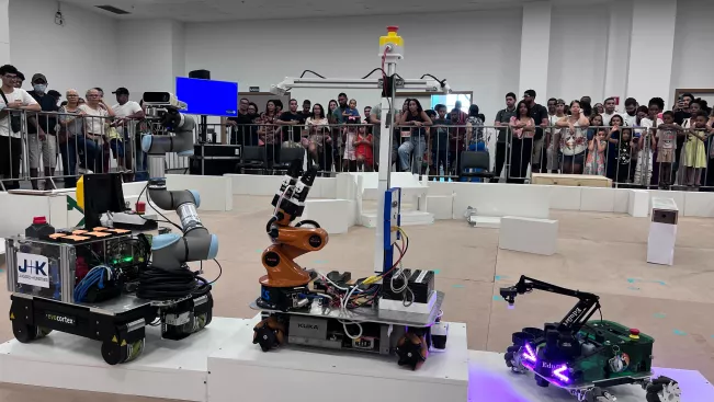Fast ebenso lange gibt es das studentische Roboter-Team „b-it-bots“, das – in häufig wechselnden Besetzungen – eine lange Erfolgsbilanz bei internationalen Wettkämpfen aufzuweisen hat. Zu den größten Erfolgen bisher gehören die Weltmeistertitel 2019 und 2023.