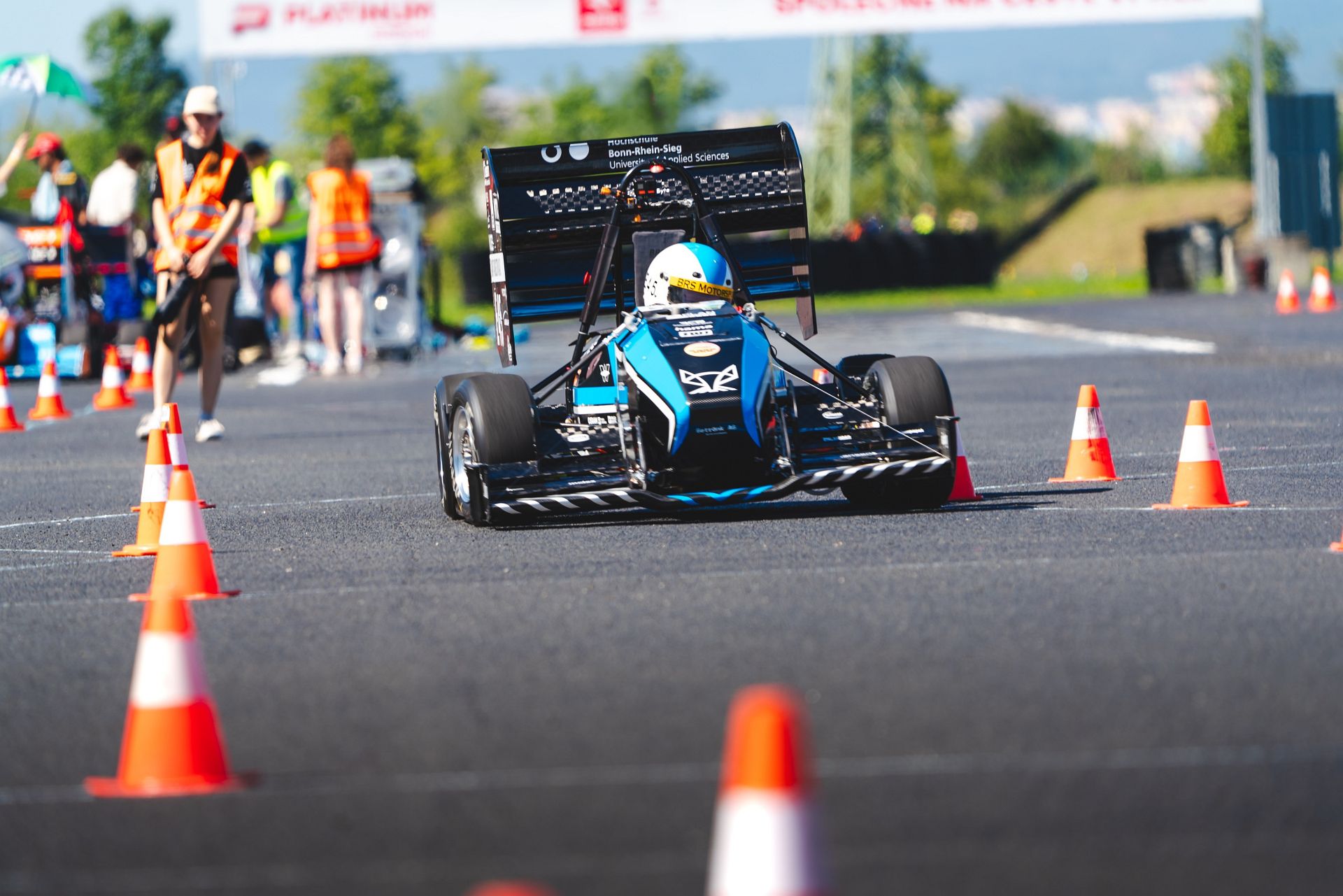 Sieben arbeitsintensive Tage und Nächte später wagten sich die Motorsportlerinnen und Motorsportler mit dem reparierten Rennwagen auf ihre vertraute Teststrecke auf dem Flugplatz Hangelar. Nach behutsamer Leistungssteigerung über mehrere Tage hinweg und erfolgreichen Bremstests reifte im Team die Überzeugung: Wir können mit diesem Auto an dem Wettbewerb in Tschechien teilnehmen. Zugleich fasste es den Entschluss, angesichts des nicht vollumfänglichen Testprogramms das große Rennen zum Abschluss des Wettbewerbs sowie das zugehörige Qualifying nicht mitzufahren.