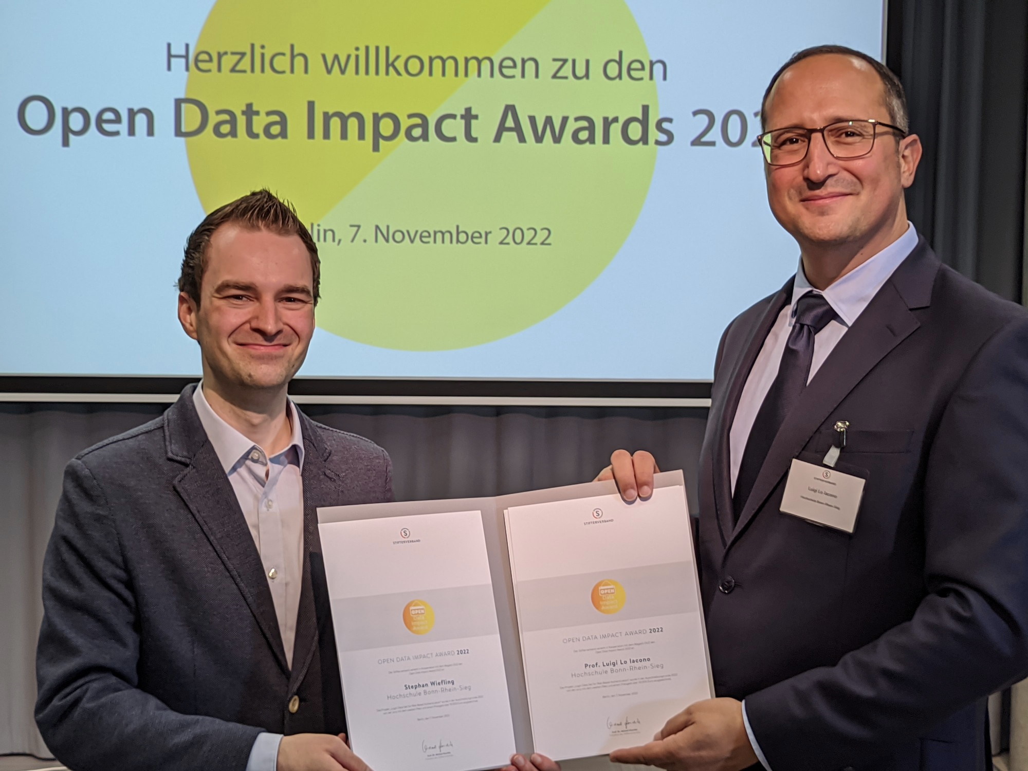 Preisverleihung Open Data Impact Award Lo Iacono und Wiefling 20221107