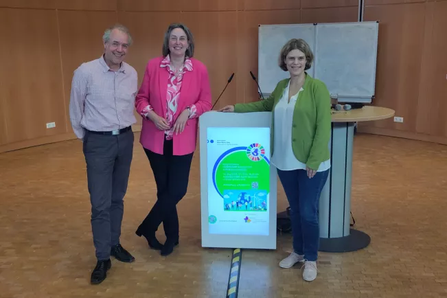 In ihrer Einführung betonte Michaela Wirtz dabei die Dringlichkeit, Herausforderungen wie eine nachhaltige Transformation gesamtgesellschaftlich bewältigen zu müssen. Als Gemeinschaft aus Wissenschaft, Wirtschaft, Politik und Zivilgesellschaft könne dabei am meisten bewegt werden, das Wir stünde im Vordergrund. Im Zentrum des gestrigen Abends: Das Credo der Nachhaltigkeitsallianz für angewandte Wissenschaften in Nordrhein-Westphalen NAW.NRW "Nachdenken, kritisch reflektieren, vernünftig handeln".