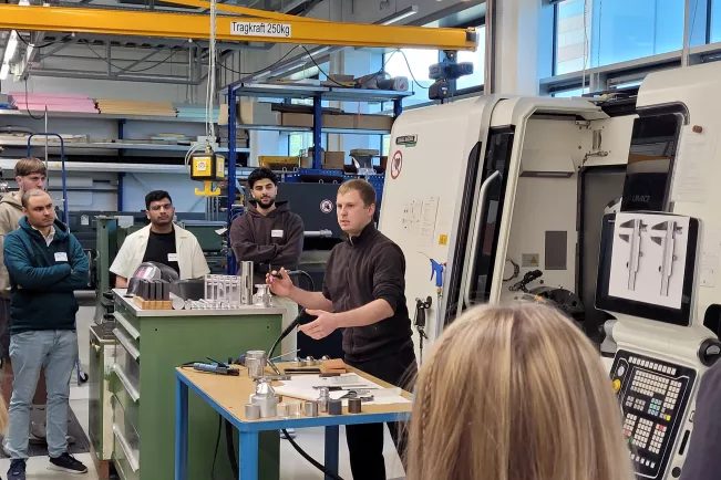 Im Rahmen der Lehrveranstaltung „Ethik und Nachhaltigkeit“ im Studiengang Nachhaltige Ingenieurswissenschaften wurde Ende April das Max-Planck-Institut (MPI) für Chemie in Mainz besucht. Diese Exkursion stand unter dem Titel „Hinter den Kulissen der Grundlagenforschung“. Zunächst gab es für die Studierenden einen Rundgang, der durch die Feinmechanische Werkstatt des Instituts und die Mobilen Labore sowie zu den Messungen volatiler organischer Verbindungen (VOCs) führte. Im Anschluss gab es noch einen Vortrag zur Good Scientific Practice, der den Studierenden näherbringen sollte, warum gutes wissenschaftliches Arbeiten von hoher Relevanz für alle ist. Anschließend durften die Studierenden sich aktiv in einem Debattenspiel zur Good Scientific Practice mit ihren neu erworbenen Erkenntnissen einbringen.