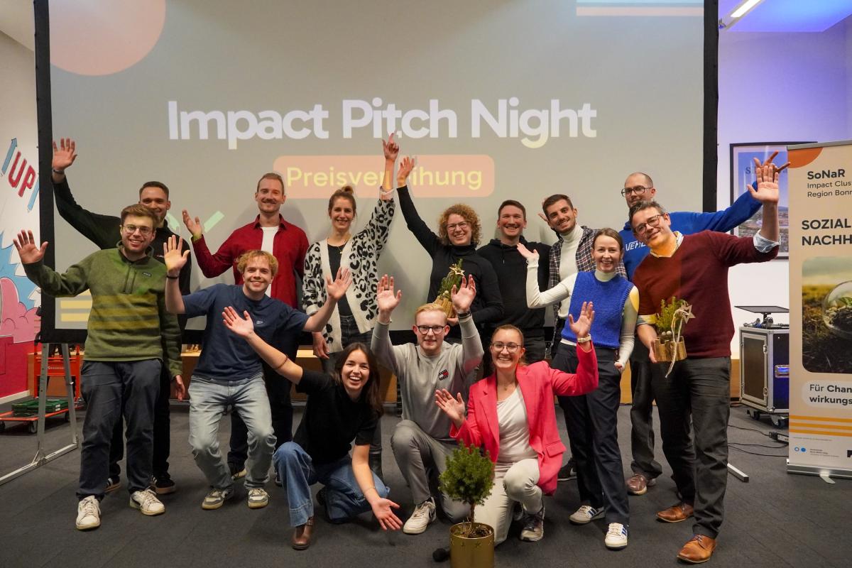 The 1st Bonn Impact Pitch Night sent out a strong signal for regional innovative strength and entrepreneurial spirit: five promising teams presented their ideas in front of over 100 interested people in the packed hall, with an experienced jury awarding the three best concepts with prize money of 3.000, 2,000 and 1,000 euros respectively.