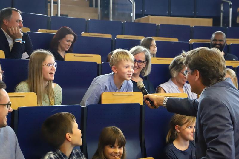 "You have met many people with us who are professionally curious," said Vice President Teaching and Learning, Professor Peter Muck, who presented the diplomas. The researchers would read, experiment and ask lots of questions. "That's the trick for your whole life," he emphasised. "Never stop asking questions." Why is the sky blue? Why can aeroplanes fly? Why does cold pizza sometimes taste better than hot pizza? If you want to find exciting answers to such questions, the university is the right place for you. "The university is a place where you look for answers and sometimes discover new questions," says Muck. As Vice President Teaching and Learning at H-BRS, he is jointly responsible for ensuring that teaching not only fills people's heads, but is also exciting. The children's university was also about combining fun and learning.