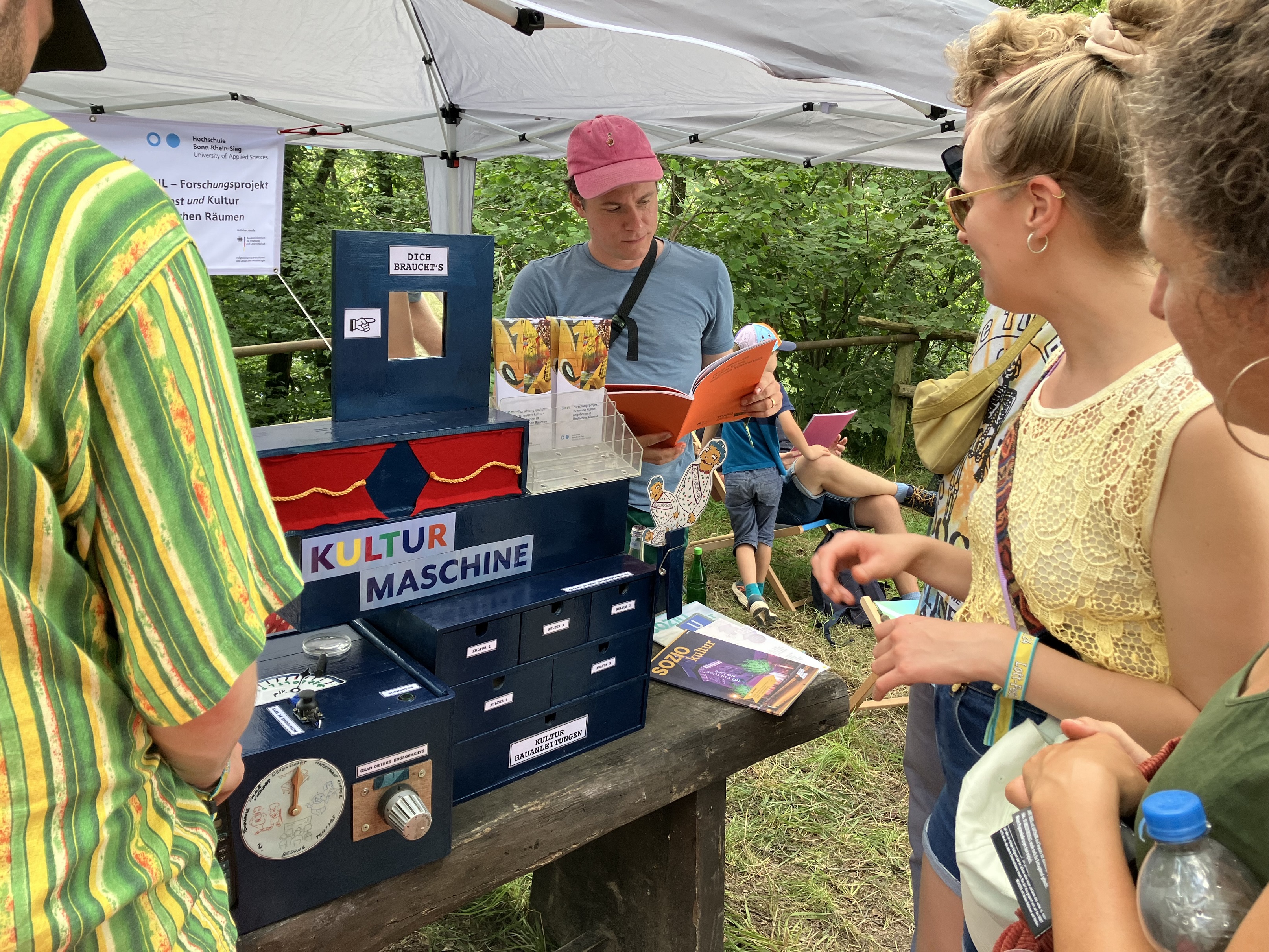 The researchers transferred the results from the interviews to the self-built culture machine, which they are currently using to engage in dialogue with citizens at cultural events. At successive stations, interested parties can indicate what they would like for their place of residence, use a joystick to set which useful contacts they have, or have a punch card punched out to indicate what helpful knowledge they have.