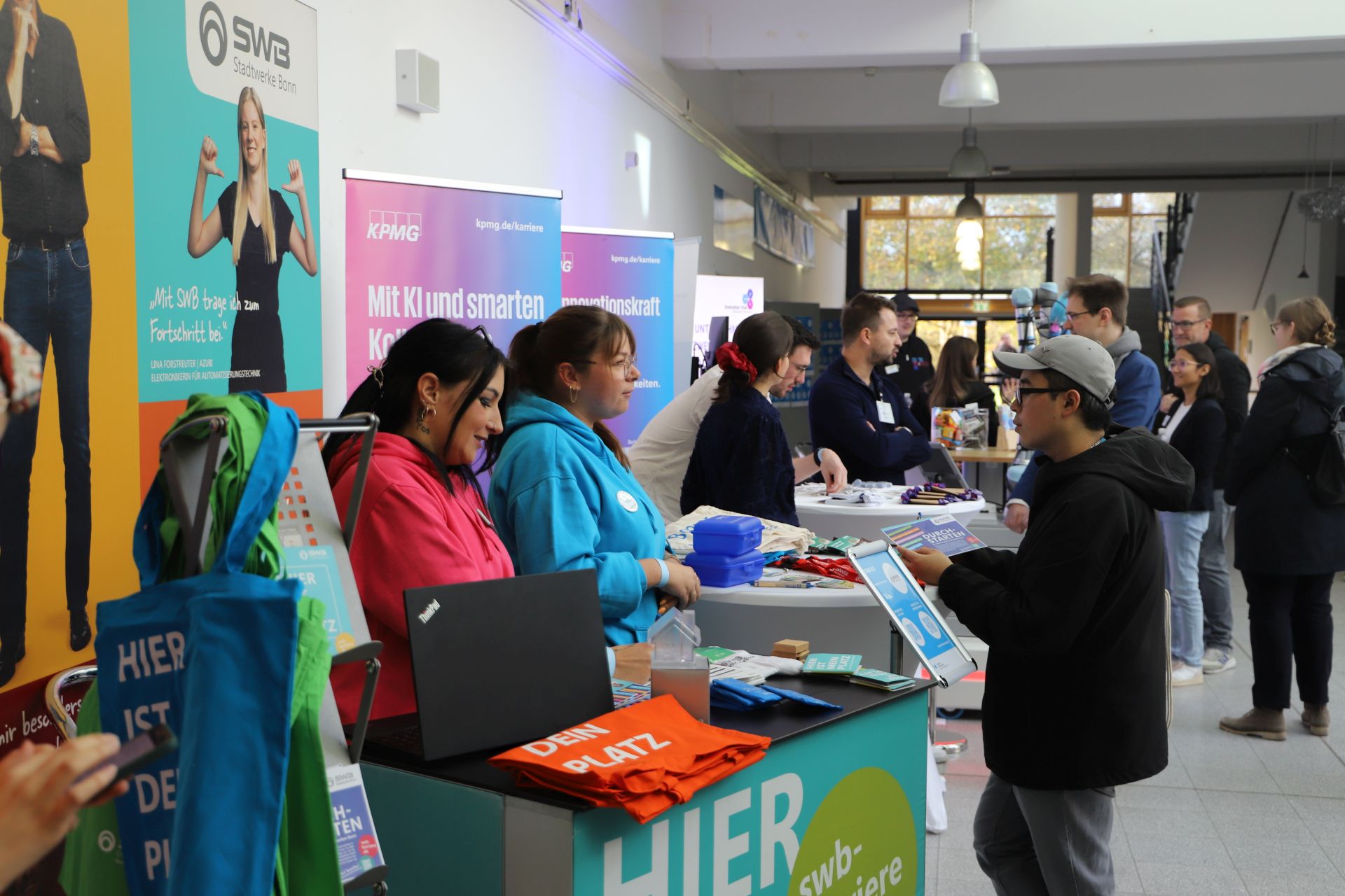 The target group for the Company Day are students, career starters and young professionals. Not only H-BRS members, but also external visitors are welcome. In previous years, many students have found an employer at the fair - some alumni were once again on the other side of the fair stand this year, recruiting young talent for their company at their former university. The university itself also presented itself as an attractive employer at a stand.
