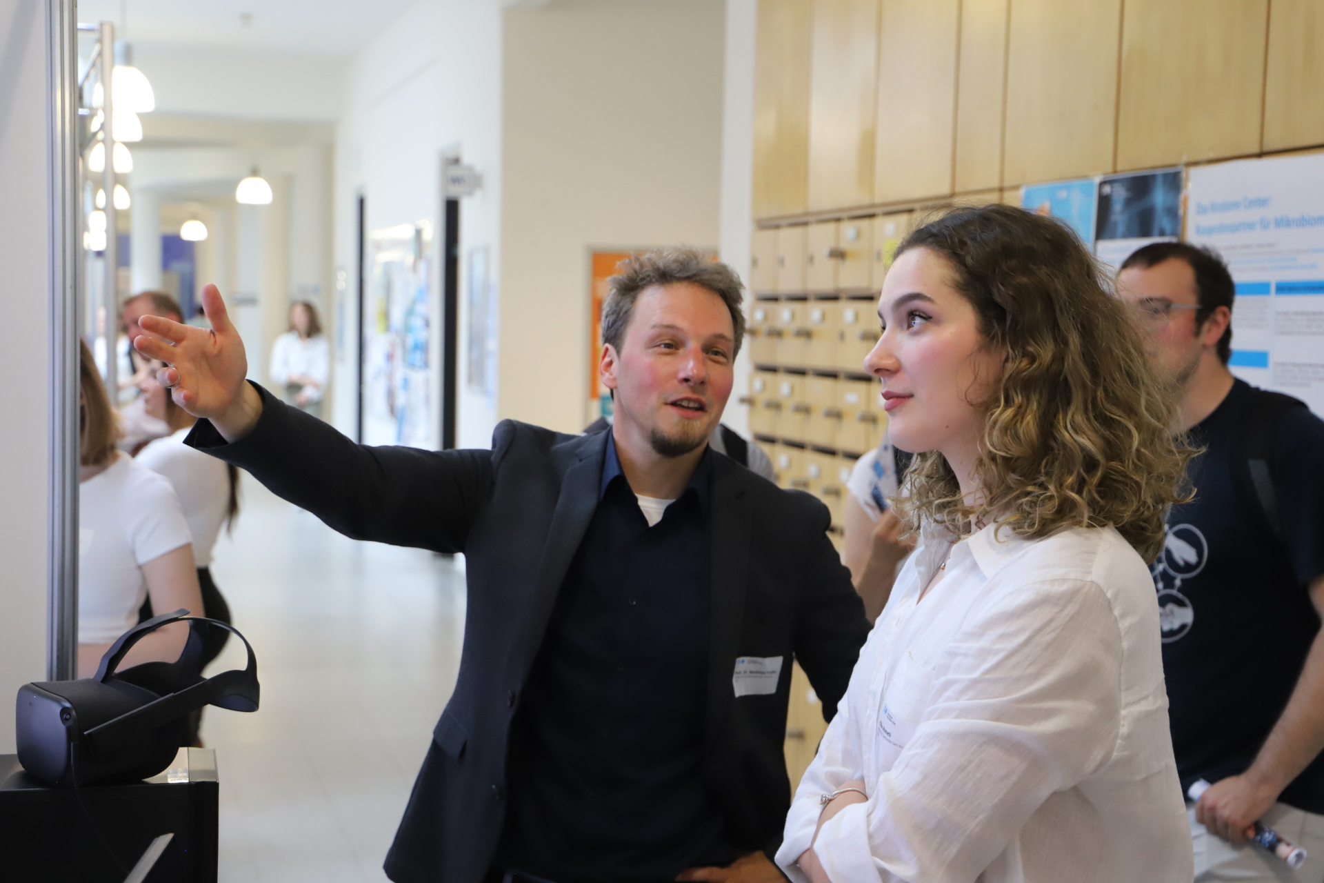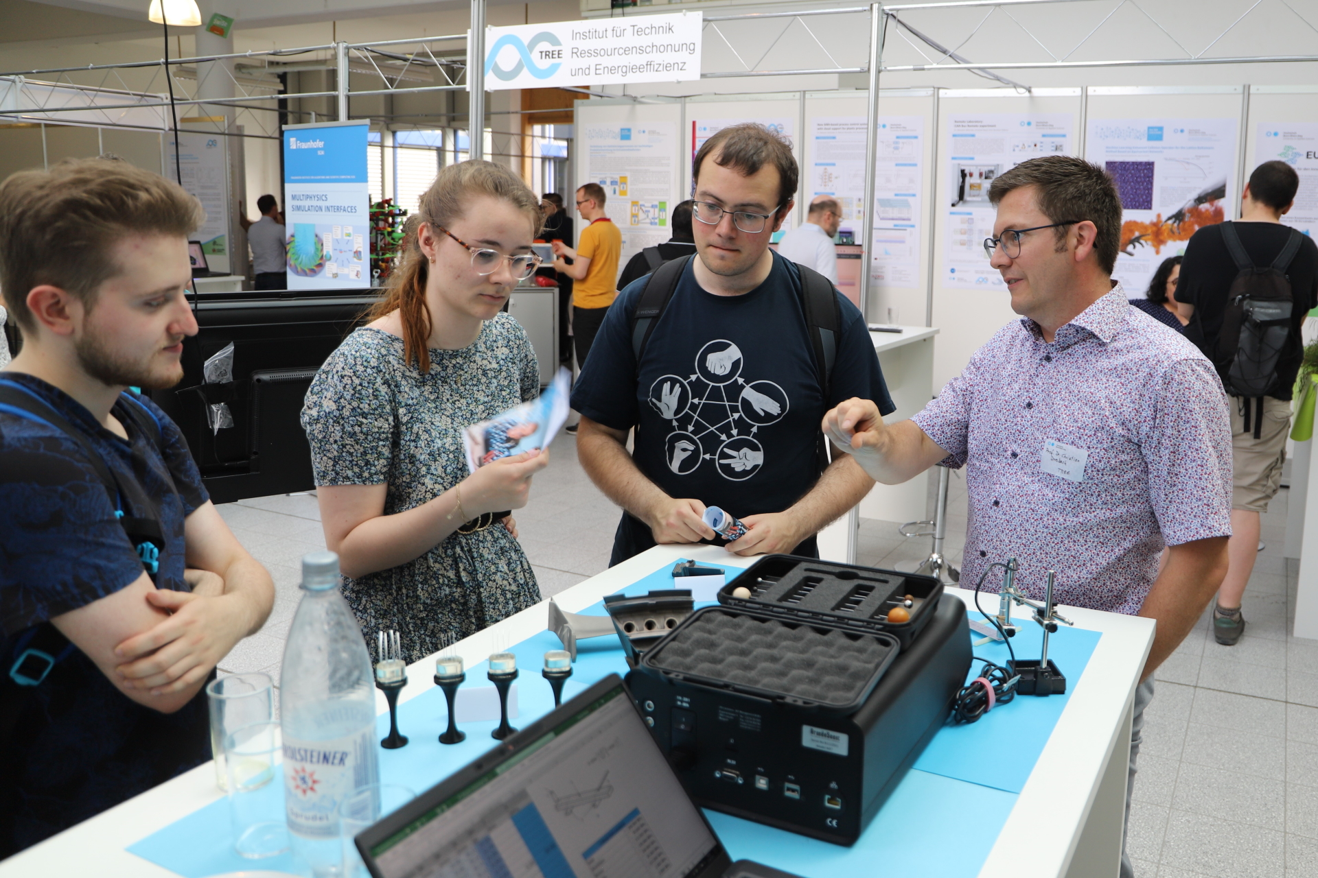 All of the university's laboratories and institutes opened their doors to visitors on Research Day. There and at the information stands on the ground floor, the scientists showed and explained their current research projects. Lectures and a panel discussion completed the programme.